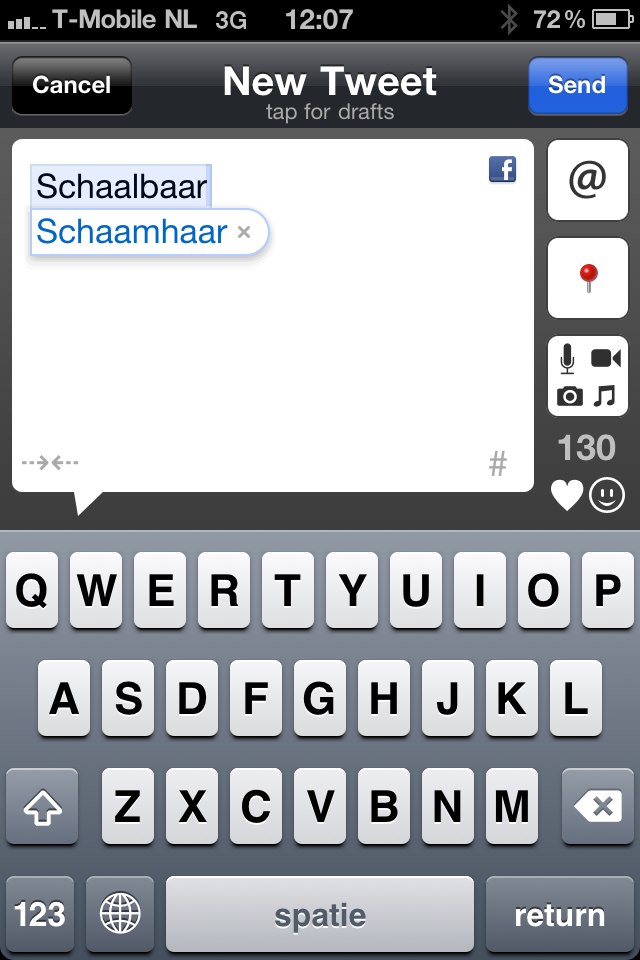 Kortom, het houdt meer mensen bezig en niemand heeft echt de oplossing. Voor mij start er vanaf nu in ieder geval een zoektocht naar de meest hilarische missers, want stel je toch voor dat ik daadwerkelijk had getweet dat de Cloud “schaamhaar” is…