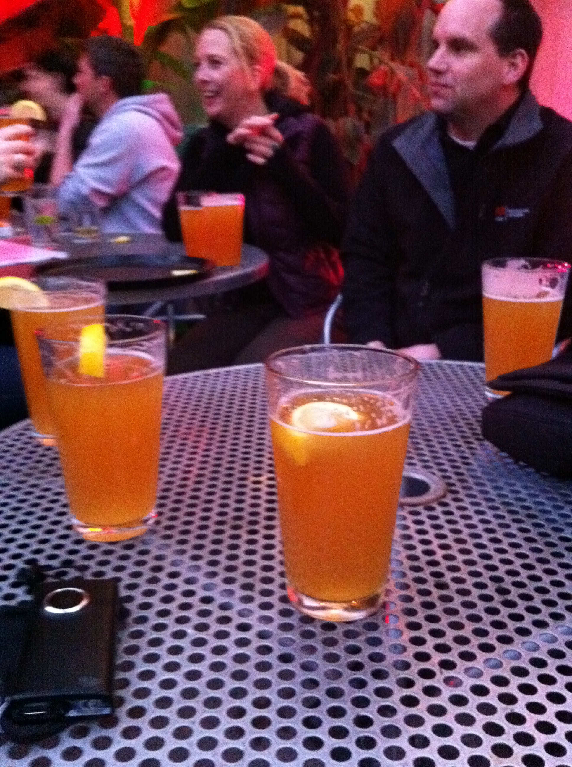 Na het overleg zijn we met hun naar de Adobe stamkroeg gegaan. Er was een speciale Adobe avond (volgens mij hebben ze dat meerdere keren per week 🙂 ) en het zat dus vol met Adobe mensen. Het hele team dat wereldwijd verantwoordelijk is voor Flash, inclusief de “baas” van Flash. Zat naast ons. Grote hilariteit toen hij, door een meisje die een nieuw drankje promootte, opeens een iPad in zijn handen gedrukt kreeg.