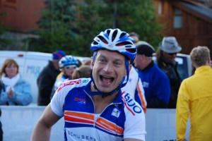 Het klimmen naar boven ging volgens plan. De eerste beklimming ging in 1:24 uur. Boven op de berg handschoenen aan, jas dicht en snel naar beneden. Snel weg van de kou. In 20 minuten naar beneden gereden, even een broodje gepakt en meteen weer naar boven. De tweede klim duurde slechts 40 seconden langer, ze hadden de start wat verplaatst 🙂 Om 8 uur was ik dus al 2x boven. Mooi op schema om 3x te klimmen voor de lunch. Boven op de berg was het nog steeds erg koud. Snel weer naar beneden dus. Op weg naar de afdaling kwam ik Richard tegen, één van de teamgenoten. Hij had erge last van zijn rug, moest echt even stoppen. Dan maar geen afdaling, maar naar binnen om warm te worden en te kijken of zijn rug beter zou gaan voelen. Achteraf gezien was dit een onhandig besluit. We hebben dermate lang boven gestaan, het hele team kwam één voor één trillend van de kou binnen lopen, dat het ritme en de focus bij mij weg was. We fietsten aan het eind van de ochtend naar beneden, rond 12:30 ben ik nog een keer naar boven gefietst. Ik vond het nog steeds koud op de berg en heb na mijn derde klim besloten te stoppen. Tja, en daar heb ik tot op de dag van vandaag nog steeds spijt van 🙂