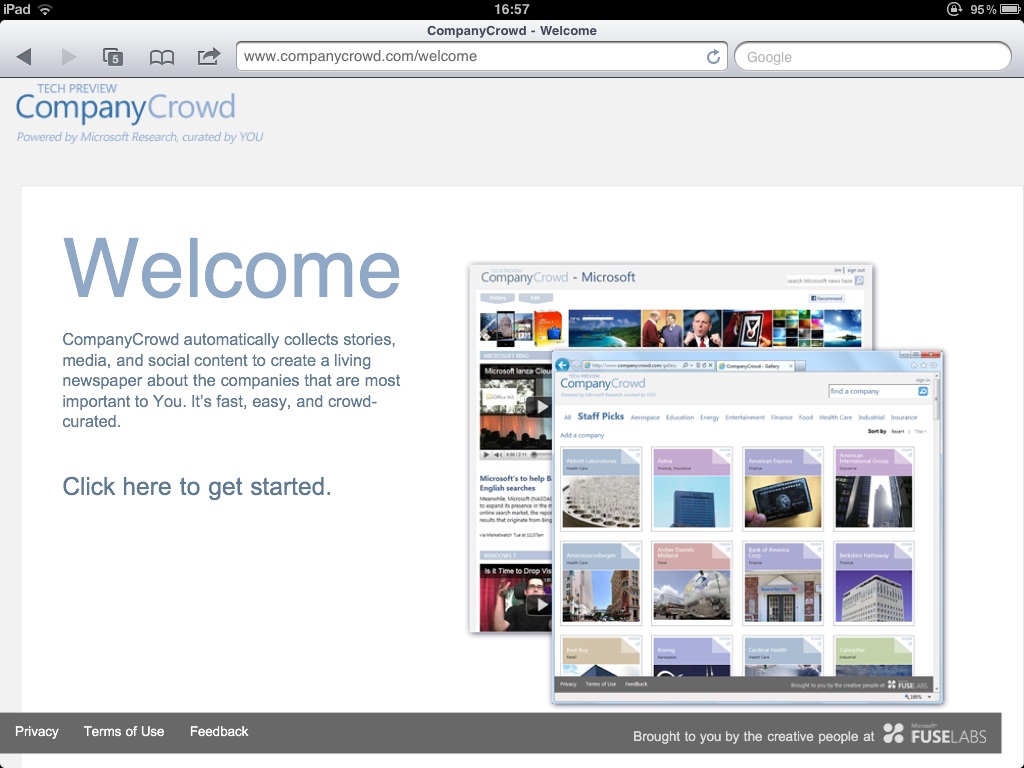 Dit gaat een beetje uit van het zelfde principe als Montage, maar hier is er al een heleboel werk voor je gedaan. Via Company Crowdkan je snel en makkelijk de voor jou relevante info vinden over bedrijven. Je kan filters plaatsen voor nieuws dat je juist wel of niet wil zien. Je kan onderdelen verwijderen. Allemaal erg eenvoudig en handig. Ook hiervan hoop ik dat het blijft bestaan. Het hele Company Crowd project is trouwens pas een paar weken geleden binnen Microsoft begonnen, indrukwekkend om te zien hoever je al kan komen in zo’n korte tijd.