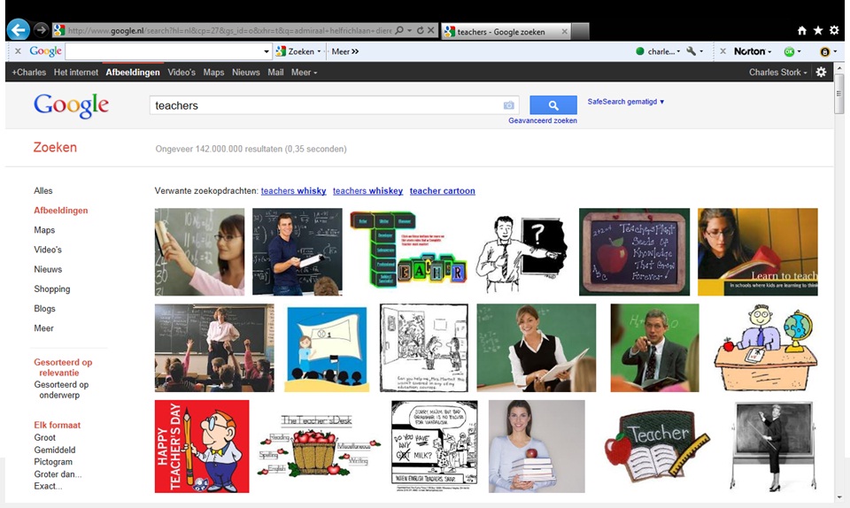 Om aan te tonen dat we nog een lange weg hebben te gaan liet ze zien wat je te zien krijgt als je bij Google op afbeeldingen van “teachers” zoekt. Je komt dan vooral de oude schoolborden tegen. Enorme ouderwetse beelden dus (de vrouw rechtsonder heeft trouwens wel een mobiel bord, best modern…). Wat zegt dat over de staat van het onderwijs? Interessante “verwante zoekopdrachten” die Google trouwens geeft, zegt dat iets over de teachers zelf? 🙂