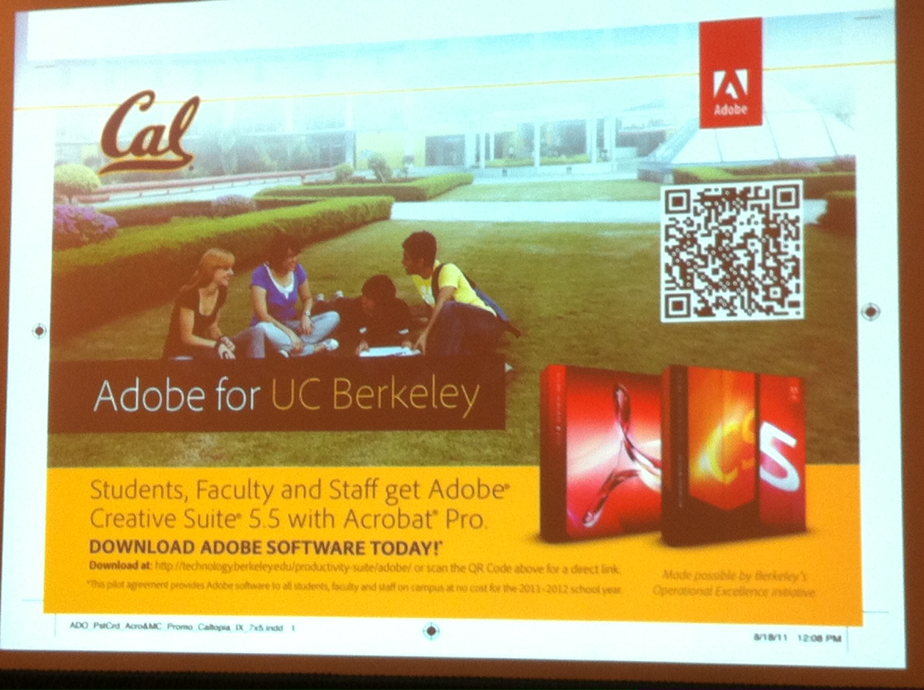 Berkeley heeft de Adobe software voor 1 jaar op hun kosten beschikbaar gesteld aan alle studenten. Van te voren hebben ze aangegeven dat ze dit 1 jaar zouden betalen vanuit de instelling, na 1 jaar gaan ze de studenten vragen of ze hiervoor willen betalen. De instelling heeft zich voor 3 jaar gecommitteerd aan het contract voor hun eigen gebruik. Om dit mogelijk te maken.