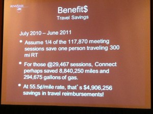 Zij gebruiken Adobe Connect voor hun interne communicatie. Er worden lessen in gehouden, meetings mee georganiseerd. Studenten en staf overleggen via Connect met elkaar. Het systeem wordt enorm veel gebruikt. Dat leidt tot forse besparingen.