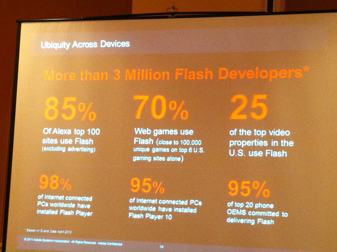 Er zat nog een mooie slide in over Adobe Flash. De slide werd als volgt ingeleid: