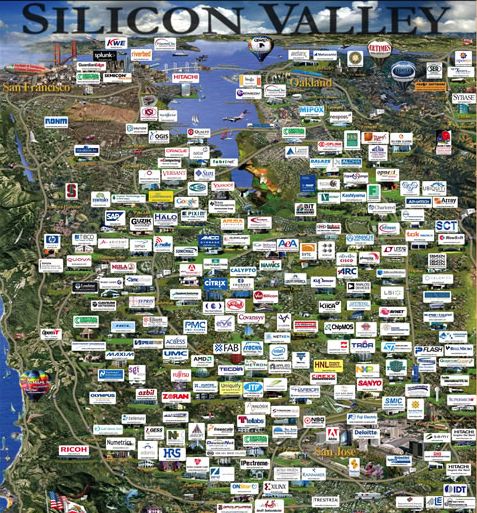 Wil je een iets beter beeld hebben van de bedrijven in Silicon Valley dan kan je met een vergrootglas het onderstaande plaatje bekijken. Of kijk even naar deze completere opsomming.